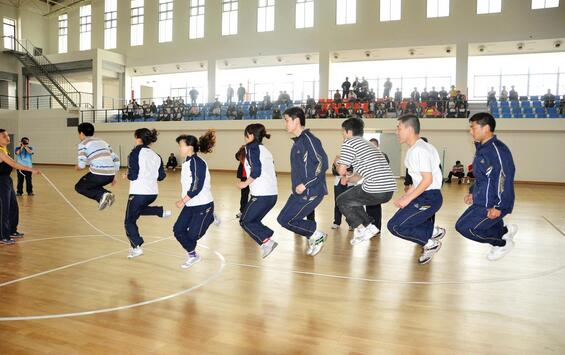 隨著運(yùn)動(dòng)會(huì)的全面展開(kāi),空曠的體育館內(nèi)頓時(shí)成了一片歡樂(lè)的海洋。本次運(yùn)動(dòng)會(huì)以趣味性的游戲比賽為載體,共設(shè)置了消防器材使用、5人6足、集體跳繩、產(chǎn)銷一條龍、集體拔河、花樣跳繩以及鉆鉆鉆等比賽項(xiàng)目,項(xiàng)目設(shè)計(jì)集娛樂(lè)與競(jìng)賽于一體,易于參加,又樂(lè)趣十足,吸引了一些平日甚少主動(dòng)運(yùn)動(dòng)的員工也積極參與其中。一個(gè)個(gè)比賽項(xiàng)目既精彩紛呈又各有看點(diǎn),首場(chǎng)的消防器材使用接力賽將消防知識(shí)與運(yùn)動(dòng)項(xiàng)目有趣結(jié)合,寓教于樂(lè)兩相宜;5人6足比賽拼的不僅是技術(shù)和體力,更是對(duì)團(tuán)隊(duì)協(xié)作精神的考驗(yàn),場(chǎng)上配合默契的團(tuán)隊(duì),口號(hào)洪亮,齊頭并進(jìn),以驚人的速度沖到終點(diǎn),讓觀眾在驚嘆之余也報(bào)以熱烈的掌聲;今年的集體跳繩項(xiàng)目,實(shí)力強(qiáng)勁的一工廠代表隊(duì)以2分鐘內(nèi)跳出84個(gè)的絕對(duì)優(yōu)勢(shì)蟬聯(lián)冠軍。