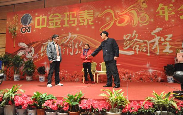 首先,徐根華總經(jīng)理代表公司董事會、經(jīng)營層向一年來,為公司的發(fā)展而辛勤工作、努力奮斗的全體員工,致以新春的祝福。隨后徐總就《2010年工作總結(jié)及2011年工作計(jì)劃》作了報(bào)告,全面回顧總結(jié)了2010年度的各項(xiàng)工作。他指出過去的一年,中金瑪泰在面臨著原材料價(jià)格的上漲、人民幣升值等各種不利因素的挑戰(zhàn),在全體員工的共同努力下,公司繼續(xù)保持穩(wěn)步的發(fā)展勢頭,較好地完成年初下達(dá)的各項(xiàng)經(jīng)營預(yù)算指標(biāo),銷售收入和資金回籠也再創(chuàng)歷史新高,企業(yè)各項(xiàng)工作取得了可喜的經(jīng)營成果,為企業(yè)持續(xù)、快速發(fā)展開創(chuàng)了良好局面。