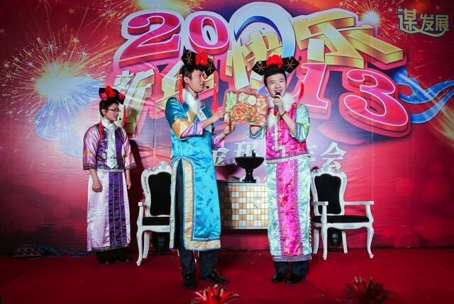 年會(huì)表演在一工廠員工那充滿青春朝氣與活力的《歌曲串燒》中拉開了序幕。本次晚會(huì)節(jié)目?jī)?nèi)容豐富,形式多樣,演員陣容強(qiáng)大,所有節(jié)目均由公司員工自編、自演、自導(dǎo),精彩紛呈、高潮迭起的文藝演出為全體員工獻(xiàn)上了一場(chǎng)精美的視聽盛宴。由銷售團(tuán)隊(duì)傾情演出的歌舞《壯志在我胸》引起了全場(chǎng)的歡呼,充滿激情與活力的舞蹈《江南style》,以動(dòng)感活躍的身姿,配合炫目的舞臺(tái)燈光,將銷售人員的創(chuàng)造力、火一般的熱情與活力展現(xiàn)得淋漓盡致。而由財(cái)務(wù)部、總務(wù)部以及海外部合作演出的“穿越”小品《甄嬛傳》更是引爆全場(chǎng),喜劇夸張表演中包納無(wú)盡創(chuàng)新元素,別具一格的反串表演,幽默詼諧,笑點(diǎn)不斷,引得觀眾席響起一陣又一陣的笑聲。此外,小品《一句話的事》、《功夫》等展現(xiàn)了演員們豐富的想象力和表現(xiàn)力,觀眾無(wú)不捧腹。歌曲《相親相愛一家人》、《小薇》、《我愿意》、《紅顏》、《霍元甲》,京劇《甘露寺》等內(nèi)容豐富的演出也深深吸引著現(xiàn)場(chǎng)的觀眾,整個(gè)年會(huì)充滿了歡樂(lè)喜慶的溫馨氣氛。