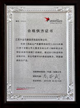 7月,安斯泰來(lái)制藥(中國(guó))有限公司供應(yīng)商大會(huì)在沈陽(yáng)召開(kāi),會(huì)上,中金瑪泰被安斯泰來(lái)制藥評(píng)為2012年度A類(lèi)優(yōu)級(jí)供方。這一獎(jiǎng)項(xiàng)的獲得也代表了用戶(hù)對(duì)中金瑪泰產(chǎn)品及服務(wù)的高度認(rèn)可。作為醫(yī)藥包裝行業(yè)的領(lǐng)軍企業(yè),中金瑪泰始終視產(chǎn)品質(zhì)量為企業(yè)的生命線(xiàn),在立足于高品質(zhì),高起點(diǎn)的基礎(chǔ)上,憑借具有國(guó)際先進(jìn)水平的生產(chǎn)設(shè)備及工藝,通過(guò)建立完善有效的質(zhì)量管理體系,以及配備先進(jìn)、精密的檢驗(yàn)、檢測(cè)設(shè)備,以科學(xué)的生產(chǎn)管理高標(biāo)準(zhǔn)、嚴(yán)要求對(duì)產(chǎn)品生產(chǎn)的各個(gè)環(huán)節(jié)進(jìn)行全過(guò)程的質(zhì)量控制及檢驗(yàn),確保為客戶(hù)提供安全、安心的醫(yī)藥包裝產(chǎn)品。